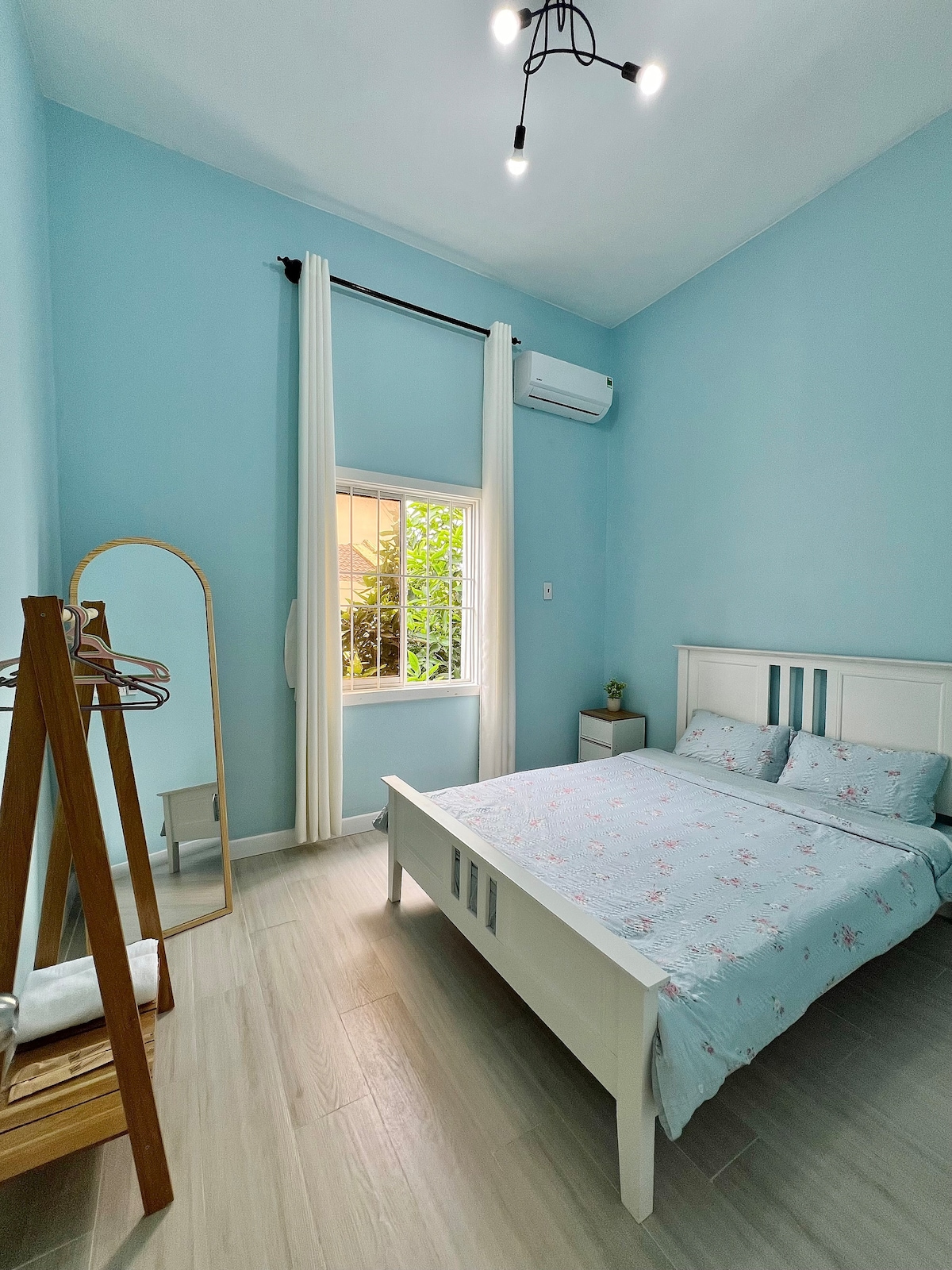 Trải nghiệm kỳ nghỉ tuyệt vời cùng gia đình và bạn bè tại căn biệt thự sang trọng, chỉ cách biển vài phút đi bộ. - 3 phòng ngủ rộng rãi, 3 nhà vệ sinh tiện nghi - Sức chứa thoải mái 10–15 khách - Thiết kế hiện đại, tinh tế, ngập tràn ánh sáng tự nhiên - Ban công và giàn hoa giấy rực rỡ, mang đến không gian thư giãn và sống ảo tuyệt đẹp. - Phòng khách lớn, bếp đầy đủ dụng cụ để bạn có thể tổ chức bữa tiệc gia đình hoặc BBQ cuối tuần - Sân vườn thoáng mát, hàng rào trắng lãng mạn riêng tư