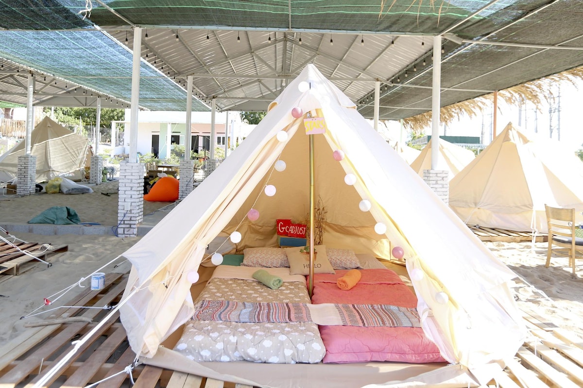 Tạm lánh khỏi cuộc sống thường nhật và tận hưởng bầu trời đầy sao nơi mà bạn có thể đón mình minh và hoàng hôn ngay bên trong căn lều của mình Lếu được trang bị gối. túi ngủ, quạt, ổ cắm điện. Sử dụng toilet công cộng. Bạn có thể ra biển chỉ vài bước chân, hòa cùng thiên nhiên nghe tiếng sống biển mỗi ngày. Thưởng thức hải sản tươi ngon của làng chài vô cùng phong phú và tươi ngon với giá rất hợp lý Ngoài ra đây còn có nhiều tiểu cảnh để bạn tha hồ check in với nhiều tắm hinh đẹp