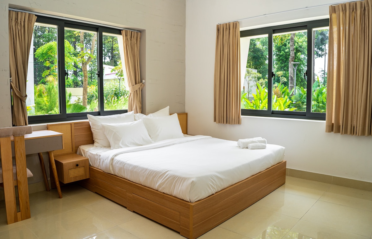 Garden View – Không gian yên bình giữa khu vườn xanh mướt Garden View là hạng phòng đôi dành cho 2 người, nằm trong khuôn viên An Tùng Retreat. Mỗi căn phòng mang đến cảm giác riêng tư, sang trọng và gần gũi với thiên nhiên, với tầm nhìn mở ra khu vườn xanh rì, nhẹ nhàng và thư thái. Tại đây, bạn có thể tận hưởng một đêm nghỉ trọn vẹn — với đầy đủ dịch vụ từ thực đơn đa dạng, bể bơi nước mặn, đến cách setup không gian, bàn tiệc theo đúng nhu cầu.