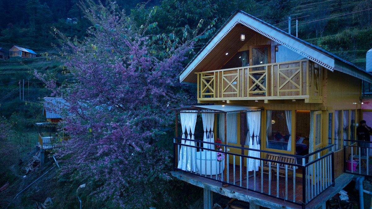 Kick back and relax in this calm, stylish space. * Wifi * Power Backup * Food service & caretaker * Private garden * Pinewood architecture * Safe Parking * Local tips * Bonfire Please note - There is 500 mtrs trek from parking spot to the property, We will pick your luggage. - Price includes stay only. Breakfast, Meals, Room heaters, Bonfire & All other services are excluded.