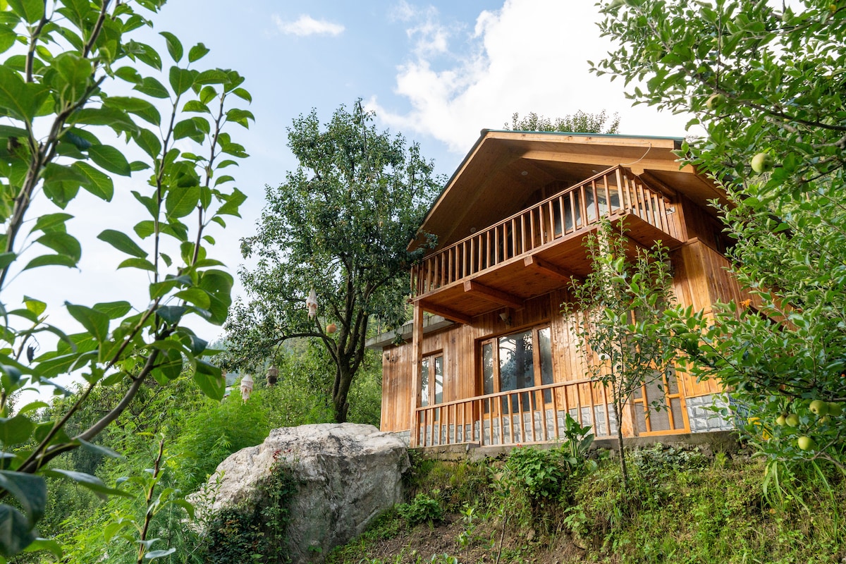 Escape to our peaceful farmstay in Sainj Valley, featuring two cozy duplex cabins—perfect for families and groups of up to 8 guests. Each cabin has 2 bedrooms (one upstairs, one downstairs) and offers beautiful mountain views, fresh air, and complete privacy. Enjoy quiet mornings, open space, and the natural beauty of the Great Himalayan National Park. Our cabins are ideal for travellers looking for a comfortable and nature-filled stay away from the crowd.