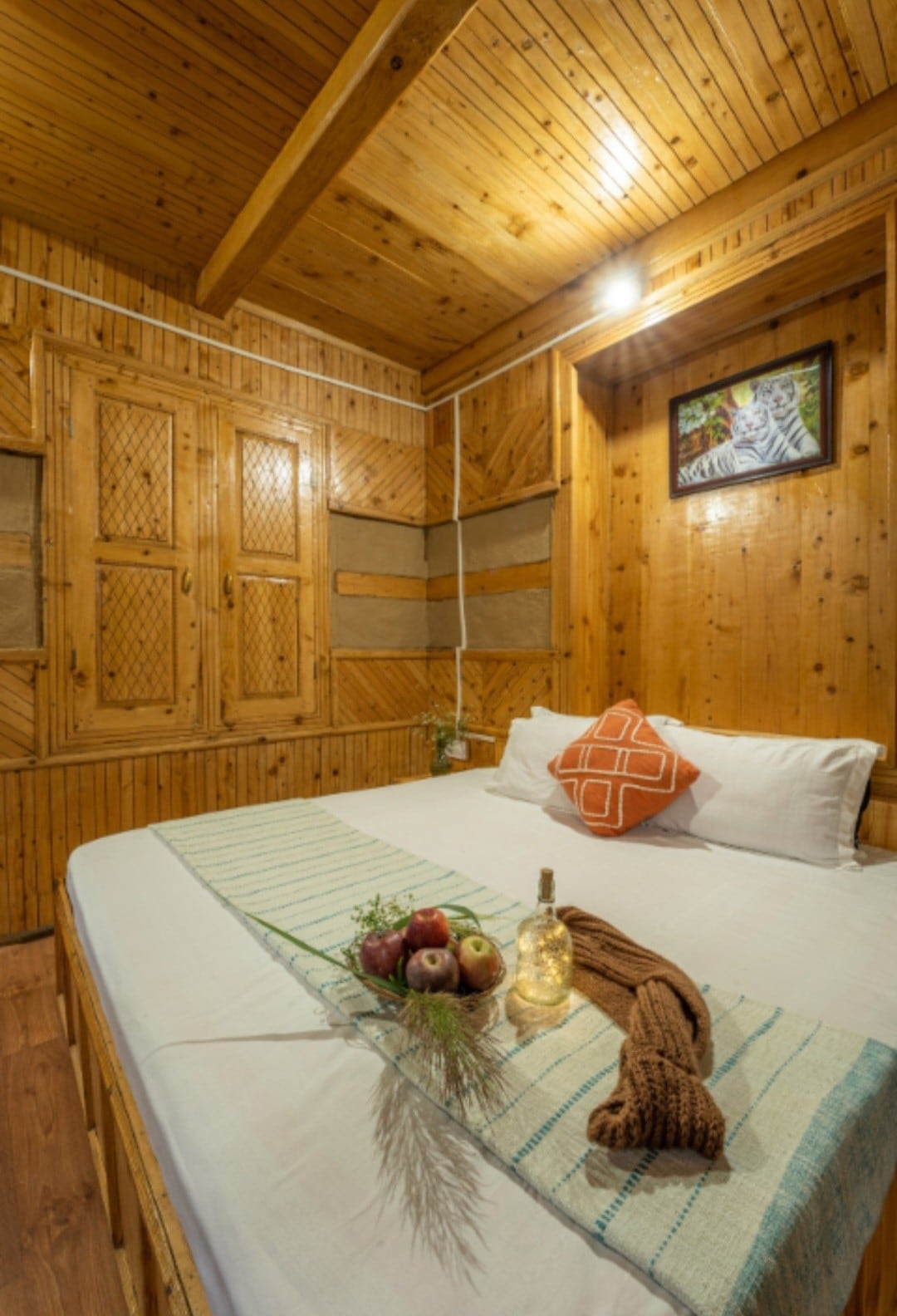 Get away from it all when you stay under the stars. Please note, there is 250 meters trek from parking spot to the property. We will pick your luggage. What You’ll Love - ★ Cozy master bedroom plus a Balcony ★ Beautiful wooden architecture ★ Wi-Fi ★ Power backup ★ Delicious in-house food service ★ Garden with bonfire area Please note - - Breakfast, meals, room heaters, bonfire, and other services are charged separately and are not included in the stay price.