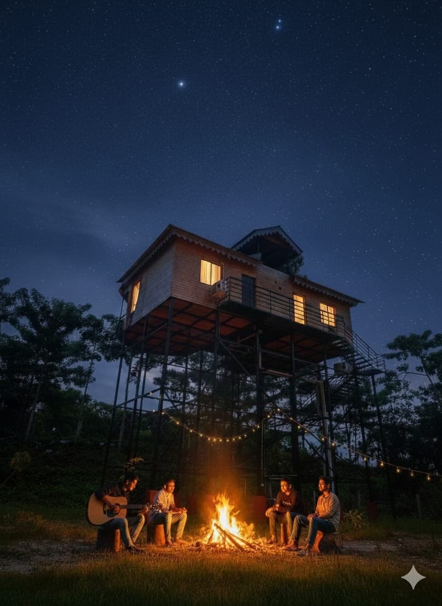 Sampan at Jaldapara is a small boutique retreat designed for those who wish to stay close to nature without giving up comfort. It offers an intimate atmosphere where every guest feels at home. Its greatest advantage is its location – right on the edge of Jaldapara National Park. This makes it an ideal base for jungle safaris, birdwatching or simply soaking in the Dooars landscape. The food here is another highlight – homely Bengali meals with a touch of Dooars flavour.