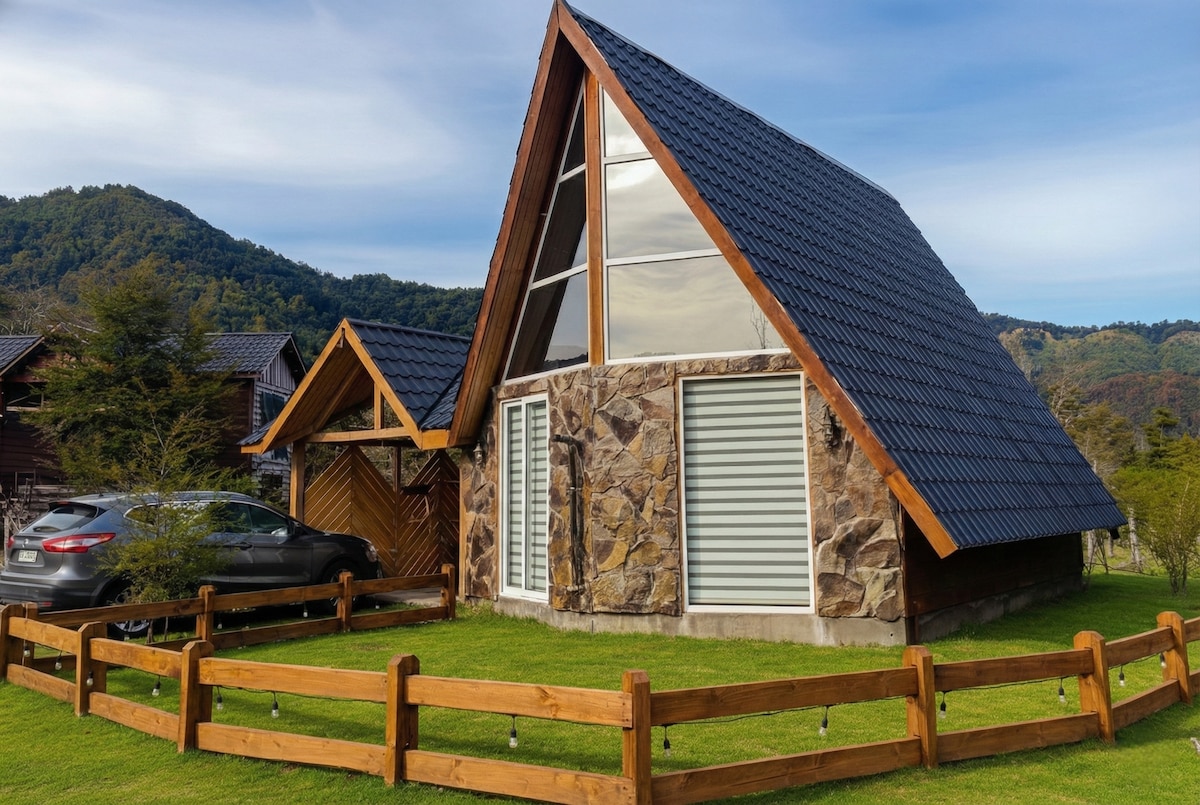 Acogedora cabaña ubicada en un entorno natural, camino a Termas de Chillan, full equipada, aire acondicionado, wifi, cuenta con una cama de dos plazas y un sofa cama ( cabaña monoambiente ) parrilla para asados, terrazas, entorno muy tranquilo y nativo, piscina, tinaja al aire libre ( servicio con costo adicional ). Estacionamiento techado.