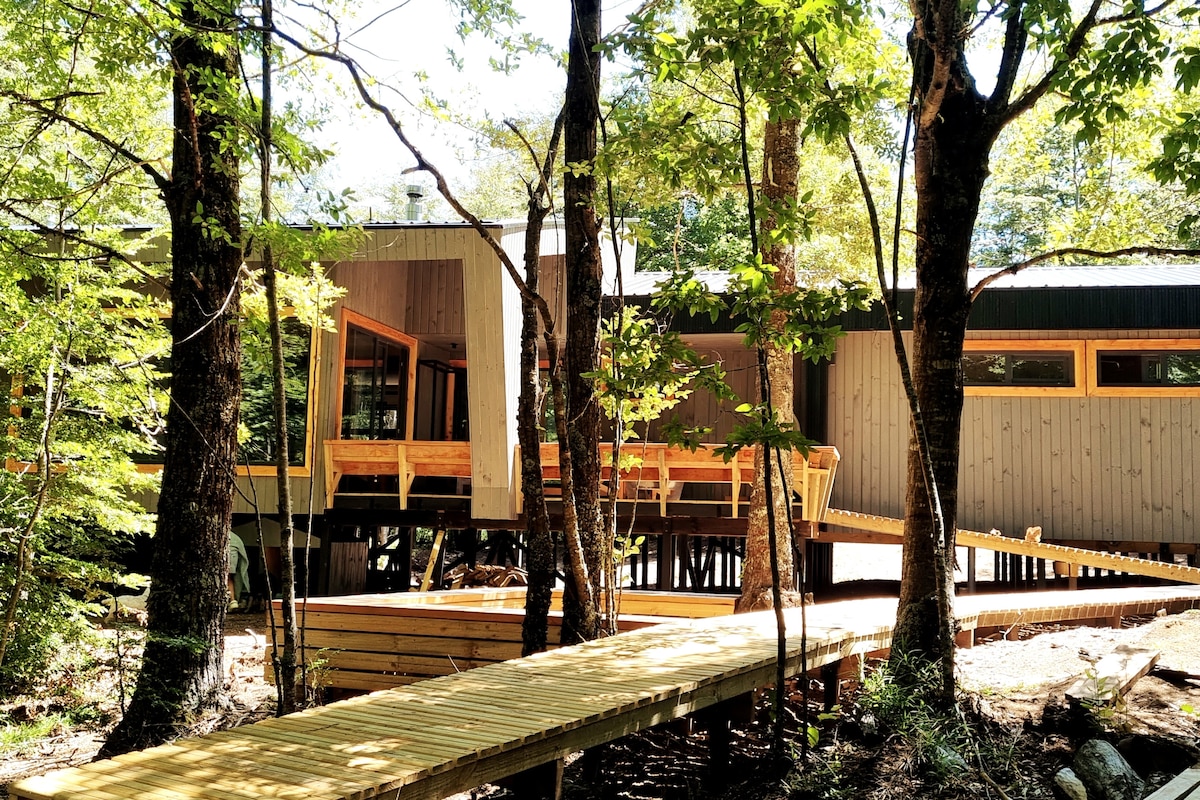 Cabin for 6 with expansive terrace overlooking our natural spring & native beech trees. Sunny location with great views. Comfortable & warm in winter with a slow combustion stove & underfloor heating in the bathrooms & entrance. Fully equipped. Non-residents of Chile are entitled to a discount of 19% on the advertised price: Passport must be shown on arrival demonstrating non-residency status.
