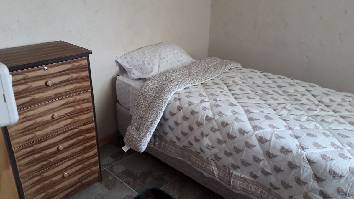 A solo una cuadra de Laguna Esmeralda y a pocas del centro de la ciudad, en un espacio tranquilo y familiar, habitaciones confortables e individuales. A paso de supermercados y universidades. Habitación individual , 1 huésped por habitación , baño privado .a sencillez de este alojamiento tranquilo y céntrico. Si requieres otras habitaciones como matrimoniales o mayor capacidad consúltanos .