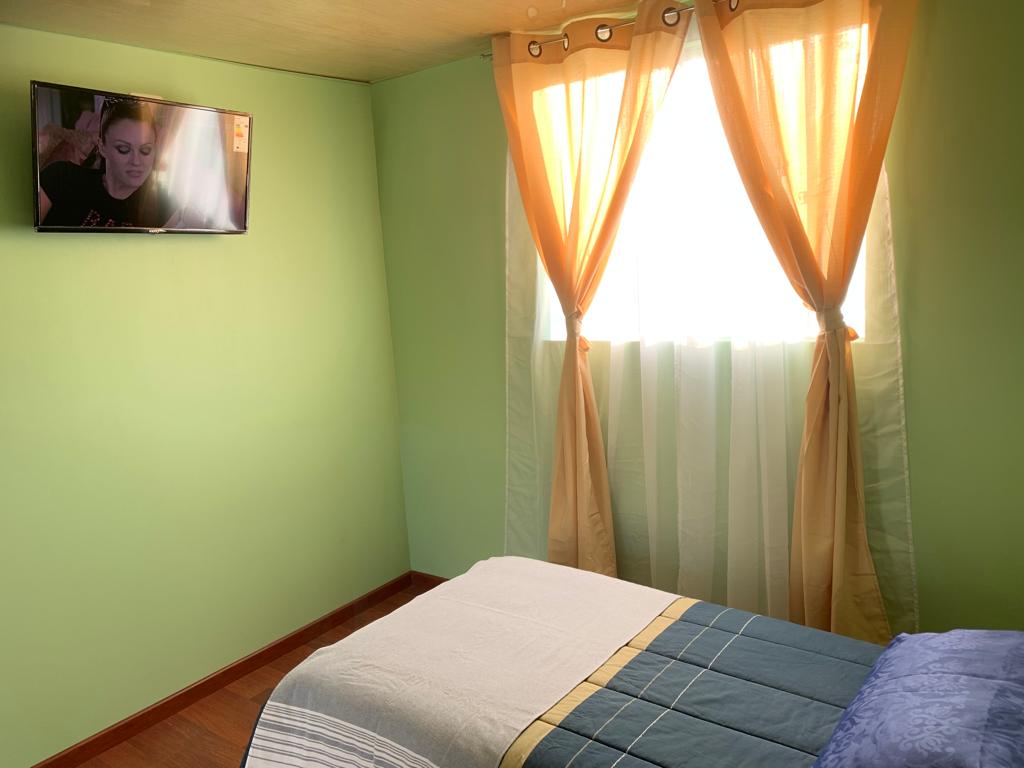 Con entrada y estacionamiento independientes, 2 habitaciones, 3 camas de 1 plaza, baño privado y living con tv y estufa combustión lenta NO TIENE PARA COCINAR, DEBE TRAER TOALLA.