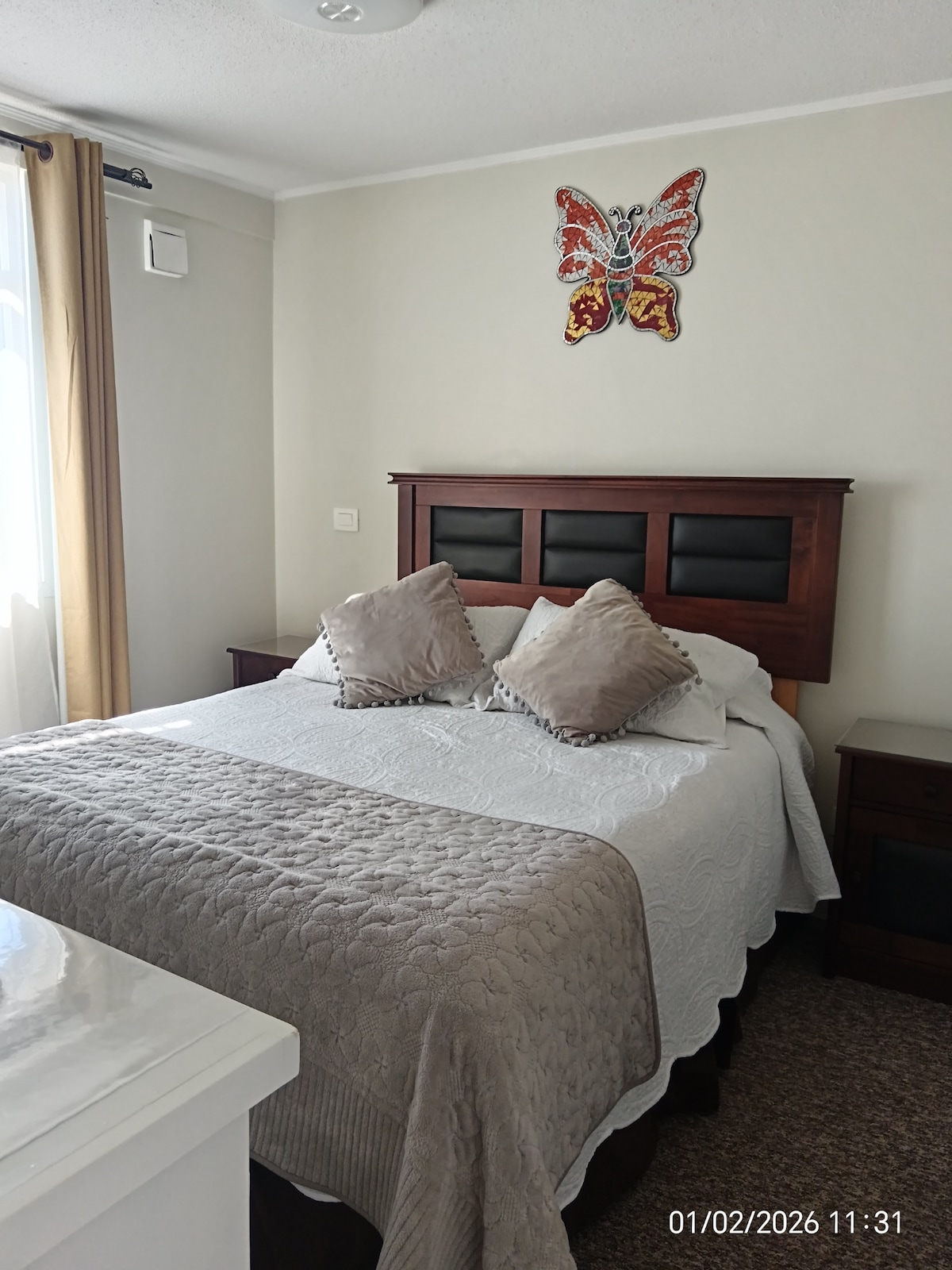 Hermoso departamento de dos ambientes, en pleno centro de Concepción, entorno tranquilo con todas las comodidades para que pases una gran estadía. Estacionamiento propio y gratuito. Ubicado en el centro de la ciudad cercano a las principales atracciones (Mall del Centro, Universidades, Centros comerciales, Parques). Excelente conectividad y opción de locomoción a la puerta. Cuenta con cuna para una mejor estancia de padres. Cuenta con Futón-cama (para tercer huésped -costo adicional)
