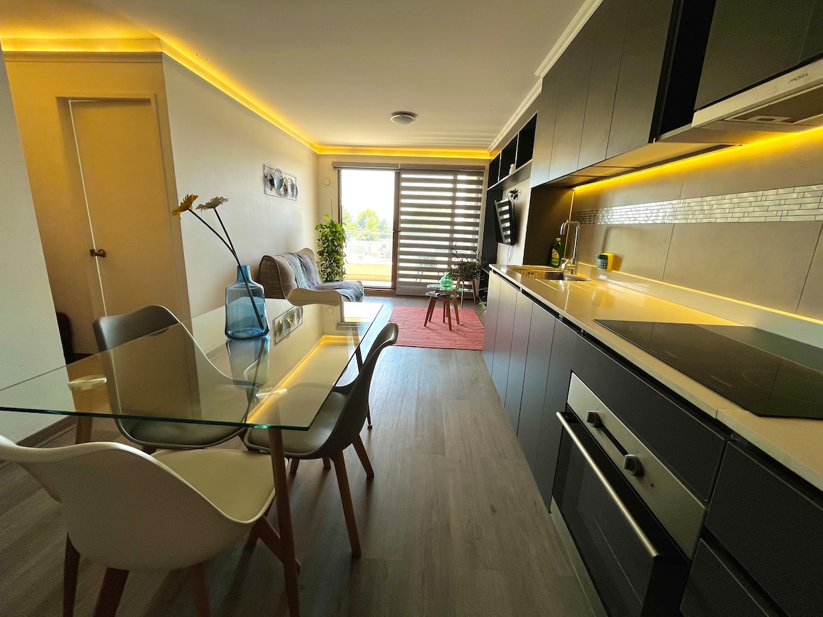 Lindo departamento nuevo, soleado, a pasos de todo (mall, supermercados, locomoción, etc.) y cerca del centro de Concepción. Full amoblado y acogedor. Equipado para que desde 1 hasta 4 personas se encuentren cómodas y como "en casa". 2 habitaciones con baños en suite, 3 camas y 1 sofá cama, WIFI y cocina equipada. Cuenta con estacionamiento techado y seguridad 24 horas. Excelente lugar para descansar y disfrutar en familia