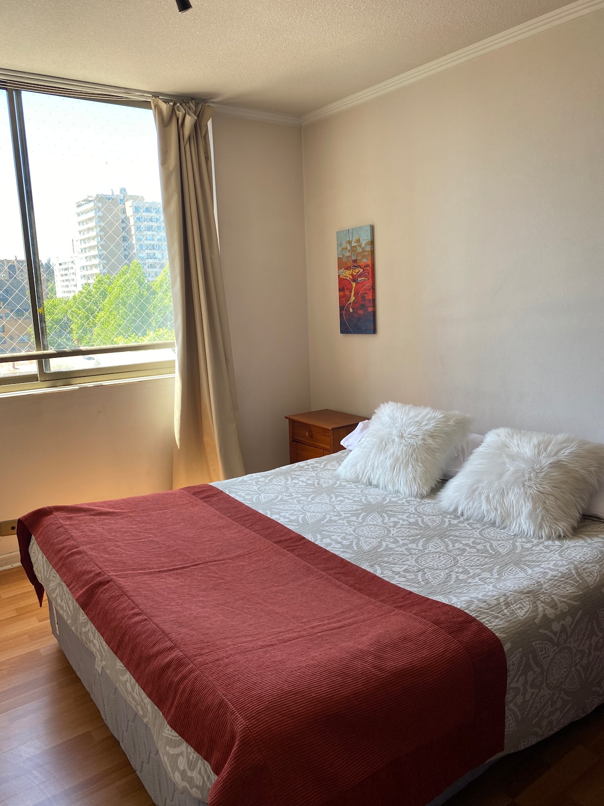 Lindo departamento nuevo, soleado, a pasos de todo (mall, supermercados, locomoción, etc.) y cerca del centro de Concepción. Full amoblado y acogedor. Equipado para que desde 1 hasta 4 personas se encuentren cómodas y como "en casa". 2 habitaciones con baños en suite, 3 camas y 1 sofá cama, WIFI y cocina equipada. Cuenta con estacionamiento techado y seguridad 24 horas. Excelente lugar para descansar y disfrutar en familia