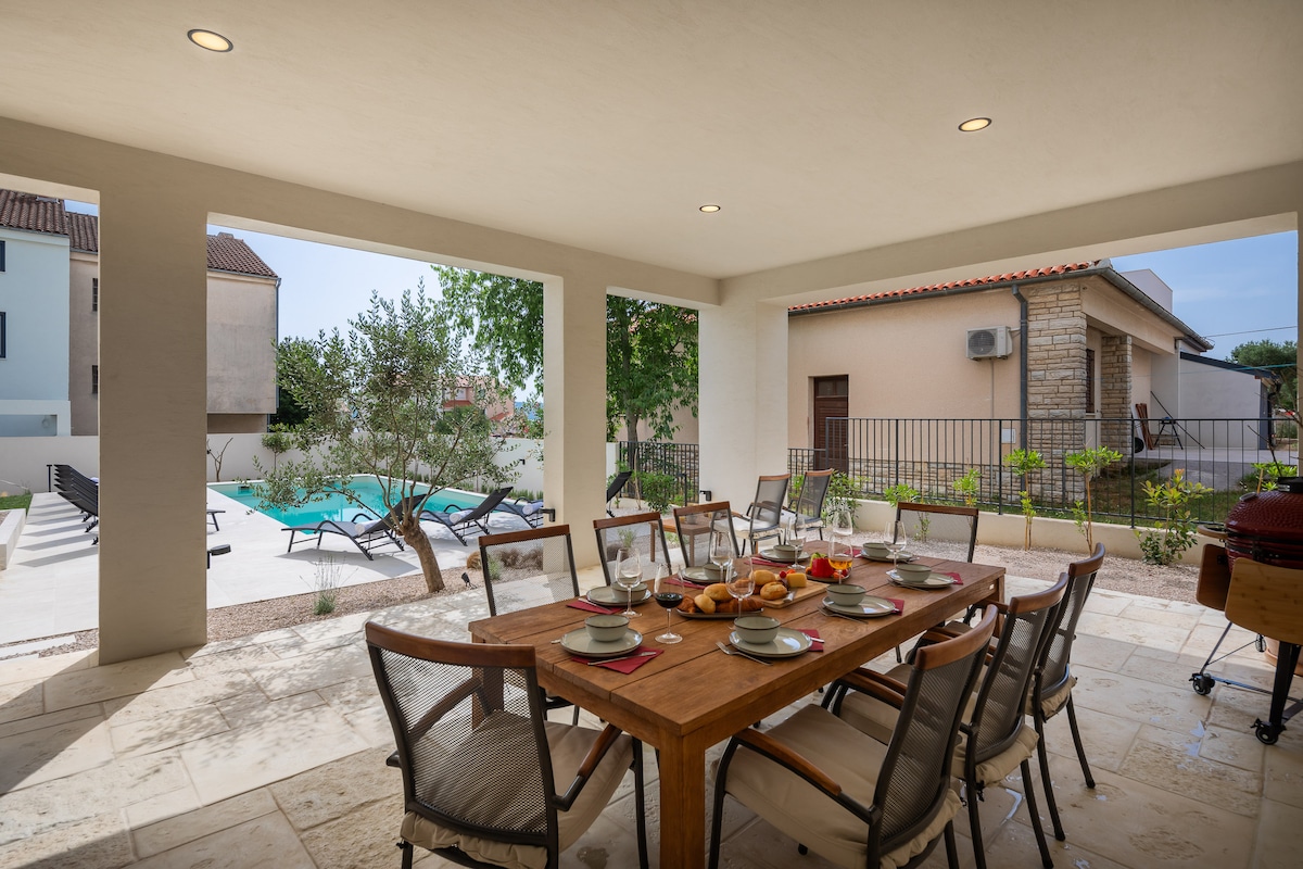 Escape to Villa Medici, a premium villa in Biograd na Moru, Dalmatia, near the Adriatic Sea. Perfect for families and groups, enjoy your private heated pool, game room and gym for fun-filled days and relaxing evenings. Spacious indoor/outdoor living areas, Mediterranean atmosphere and total privacy make it ideal for unforgettable memories. Close to beaches, restaurants, islands and national parks. Your perfect Croatia getaway starts here.