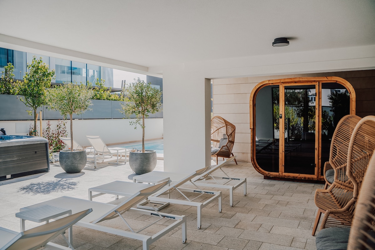 设计师2层公寓•加热泳池•花园露台