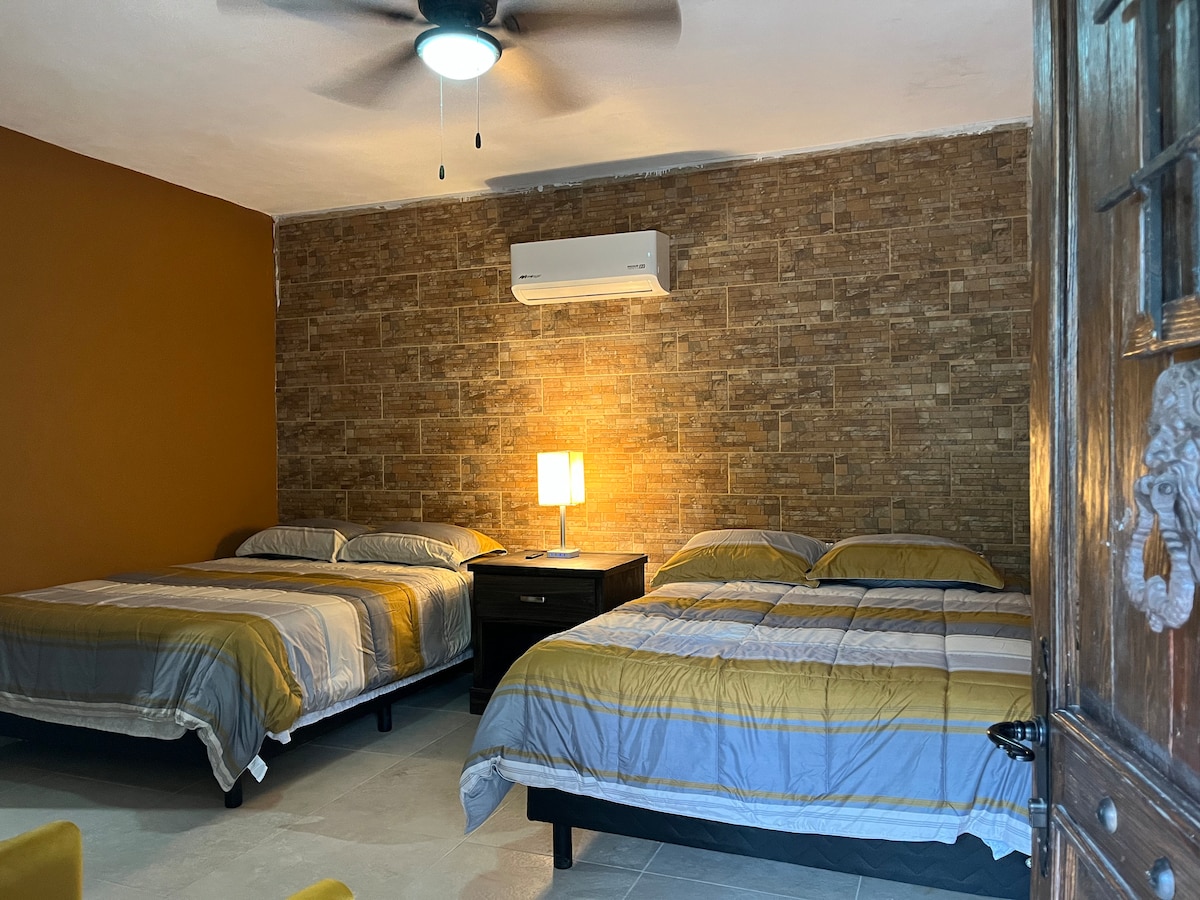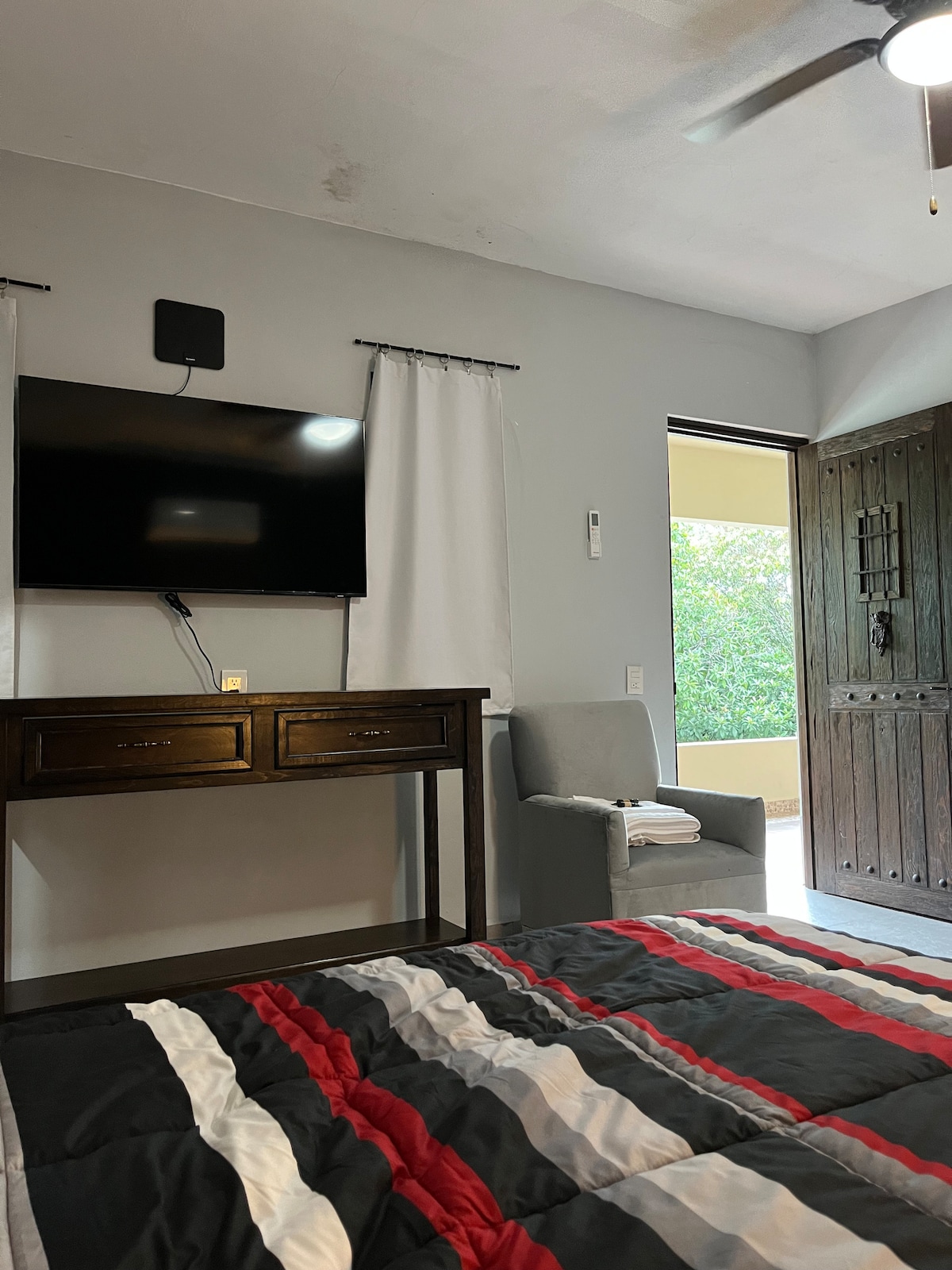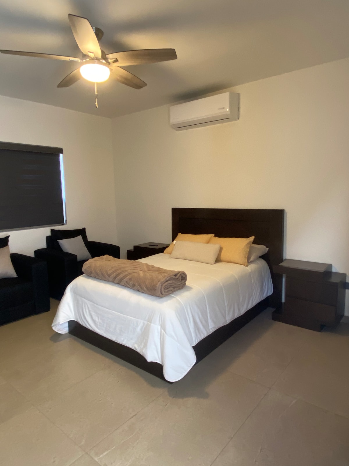 Take Welcome to our Cozy house in a gated community located just 4 minutes from the University of Montemorelos. Whether you come for work, study or vacation we have everything you need to feel like home away from home. As you arrive to the apartment you can let yourself in with your personal code. The place has 3 air conditioning units for your confort. In the living room you can enjoy a 50" smart TV with free Netflix as well as high speed internet. The patio has a BBQ grill, table and chairs