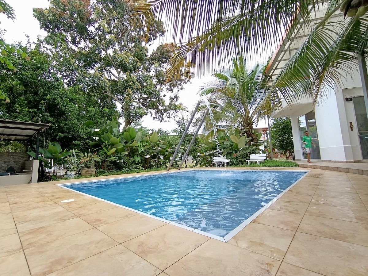 Casa divina, moderna, en Villavicencio, 4 habitaciones, perfecta para descansar en familia. Amplia, tranquila, con clima ideal y piscina privada. Ubicada a 5 min de restaurantes gourmet, mini mercados y del aeropuerto. Cocina externa perfecta para asado en barril, rodeada de naturaleza con el canto de pájaros al amanecer. Ideal para desconectarte y estar cerca de Bogotá. Servicio de Rappi, cerca a Ocarros! perfecta para relajarte en el corazón del Llano colombiano. ¡Tu escape soñado te espera!