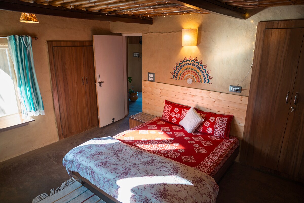 Perfect long term gateway or WFH station for family & group of friends A serene stay overlooking the rice farms with stunning mountain views, conveniently located away from the tourist hustle & yet close to the flying city Bir(2Km). The bathroom(not attached) is a mix of village style feel with modern amenities, has a shower, geyser & western style seat in a separate cubicle. Kitchen is fully functional with fresh supply of vegetables from garden along with basic ingredients supply.