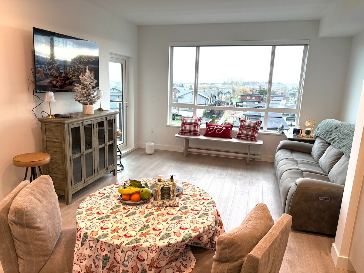 Welcome to your home away from home! This brand-new 2-bedroom, 2-bathroom unit offers comfort and convenience, just minutes away from White Rock Beach/ Crescent Beach. Enjoy easy access to shops, restaurants, and more. Features include a fully stocked kitchen, electric fireplace, air conditioning, in-suite laundry, secure underground parking, and keyless entry. Perfect for both work and leisure, this spacious home is the ideal base for your getaway. We look forward to hosting you!