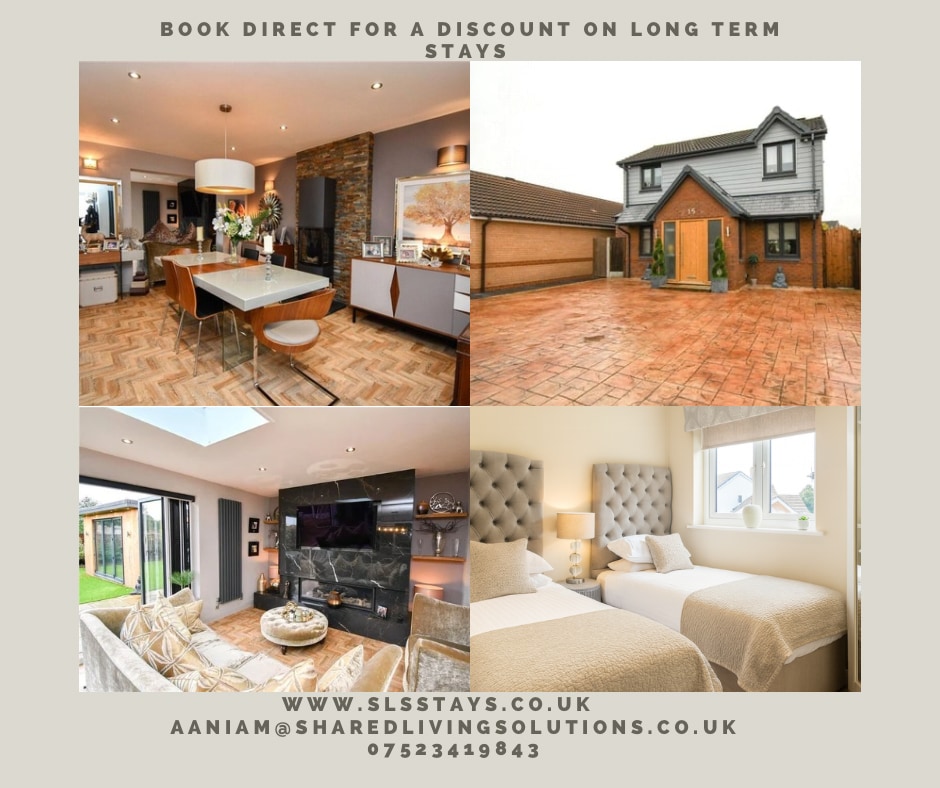 🏡 4-Bedroom Home – Perfect for Families, Contractors & Groups! ✨ Property Highlights: • 👥 Sleeps up to 8 guests • 🛁 2 modern bathrooms • 🛏️ Bedrooms: • Room 1 – 2 Single Beds • Room 2 – 1 Single Bed • Room 3 – 1 x single bed • Room 4 – 2 single beds Living room - day bed with trundle. Which can make 2 singles or 1 double 🚗 FREE private parking for up to 6 cars 🔐 Secure, clean & professionally managed ⚡ Fast Wi-Fi + fully equipped kitchen 🛍️ Safe area with great transport links