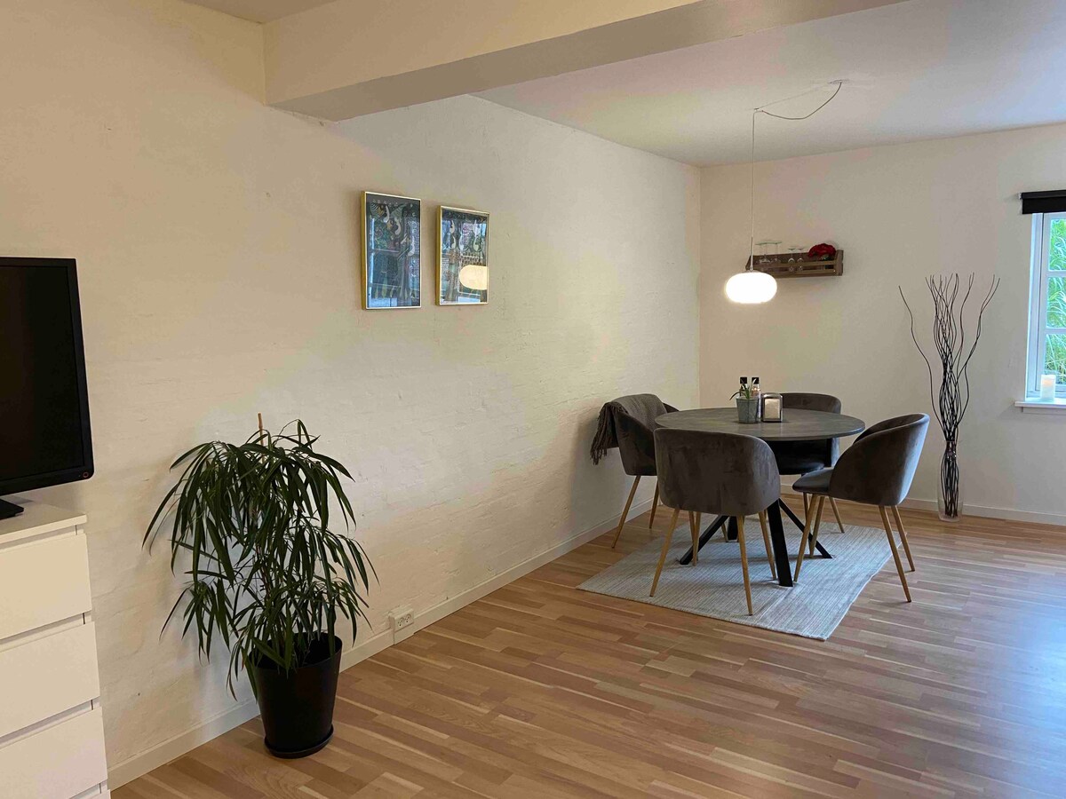 Nice apartment in Søllerød, 2 bedrooms, living room and bathroom (total 65 sqm). Kitchenette with fridge, electric kettel, and microwave. No stove and no cooking. 20 min from Copenhagen by car. Just next to the lovely Kirkeskov forest. The apartment is renovated and is located in the basement of a nice old house from year 1900 with its own entrance. The forest is perfect for running, walking and bike trips. We recommend a car and have free parking. We look forward to welcome you, Tina & Henrik.