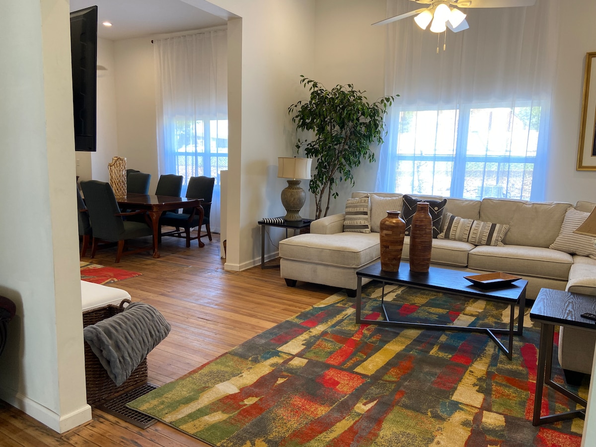 Welcome to the EXECUTIVE SUITE!! Newly remodel 3/29/2025 Fresh paint, appliances, TVs, sound systems, electronics, and Alexa Smart house controlling all door locks, lighting, jacuzzi, sound systems, ceiling fans, and thermostats Located in The historical South Side part of Birmingham, you are minutes away from UAB/Downtown Birmingham! This home comes with temperature color Lighted Shower, Jacuzzi, Full Kitchen, Washer/Dryer, Bedding and Linens. Free WiFi, Security cameras outside.