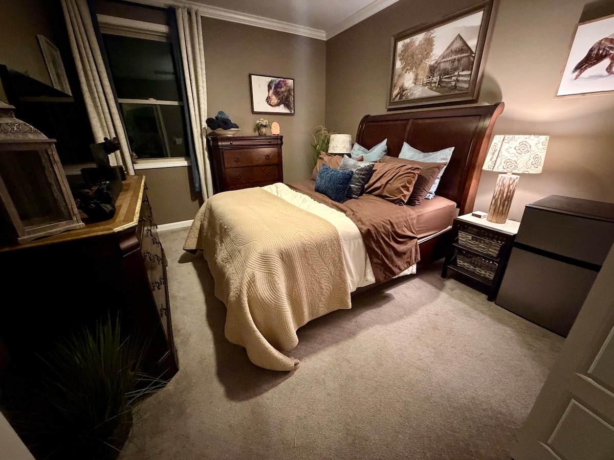 Please Go to House rules->Additional Rules->READ and provide the code word with your initial reservation request. We call this room Southern Comfort due to its light brown paint. Discover comfort in our cozy private room with a luxurious full bed. Ideal for solo travelers or couples, this space offers a workspace, TV, and mini fridge. Enjoy access to shared spaces including a full kitchen, and living room with a fireplace. Self-check-in and free parking by the garage make your stay seamless.