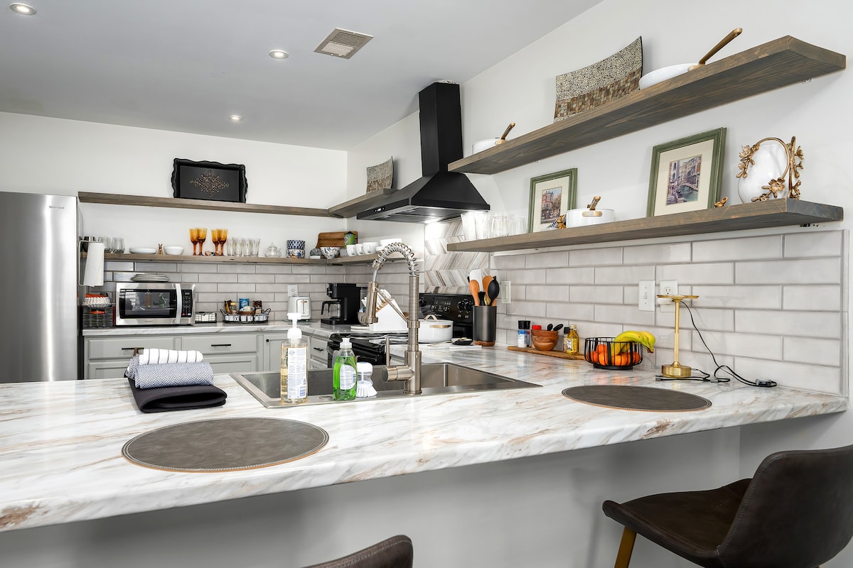 This New Construction Micro Studio Loft is located in the heart of Downtown Birmingham. Guests will enjoy quartz countertops, gas range, washer & dryer, frameless shower, hardwood flooring & all the designer touches including barn doors & exposed brick walls. The unit is within walking distance to area restaurants, Regions Field, Children’s Hospital, Rotary Trail, Good People Brewery & much much. The Macaroni Loft building even features a second floor balcony. Come book your stay with us today!