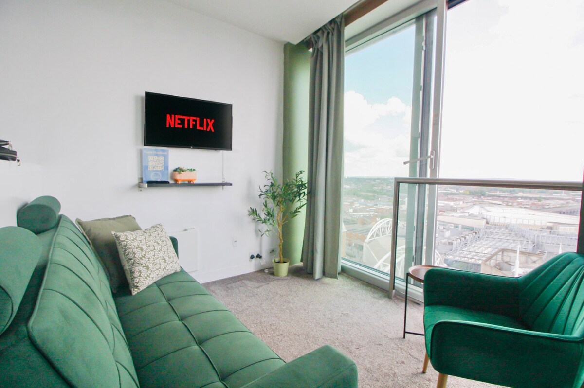 ★The Olive Suite | City Views | Netflix | FREE Airport Transfers to BHX★ Welcome to The Olive Suite, a cosy 10th-floor studio with stunning city views. Enjoy a comfy King-sized bed, sofa bed, fast WiFi, and Netflix. The fully equipped kitchen, complimentary snacks & coffee, and peaceful ambience make it the perfect retreat. Stay 3+ nights for a free airport drop-off. Centrally located, secure, and stylish—your ideal home away from home. Book now!