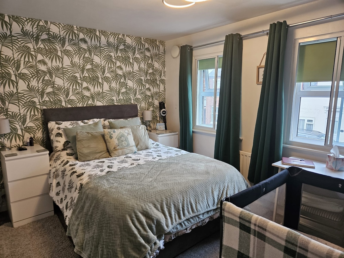 Double bedroom with tea/coffee making facilities. Extra snack items are provided but I do not cater for special dietary requirements! A separate private bathroom, for your own use, which has a shower over a bath. There is one double bed . One shorty bed which is only suitable for a child under 11 years of age, I also have a travel cot suitable for a baby or infant REQUEST THIS if you need it this is a terraced property in a URBAN area triple glazed windows reduce traffic noise.