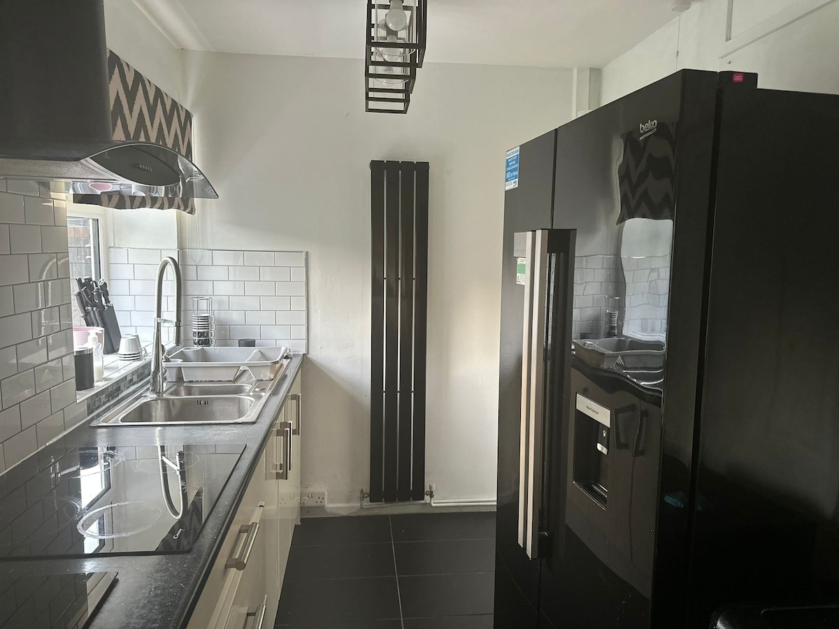 Lovely mid-terrace house with a warm welcome, filled with all necessary conveniences to make the stay of 6 people a pleasurable one. You can self check in. Excellent transport links train station a 20 minute walk, bus stop a 5 minute walk and the airport 10 minutes by car. There are shops and a supermarket a 5 minute walk away. Kitchen/dining room with gas cooker/oven, microwave, washing machine, kettle, toaster, Iron and ironing board and gas centre heating. Lounge has a smart Tv and WiFi.
