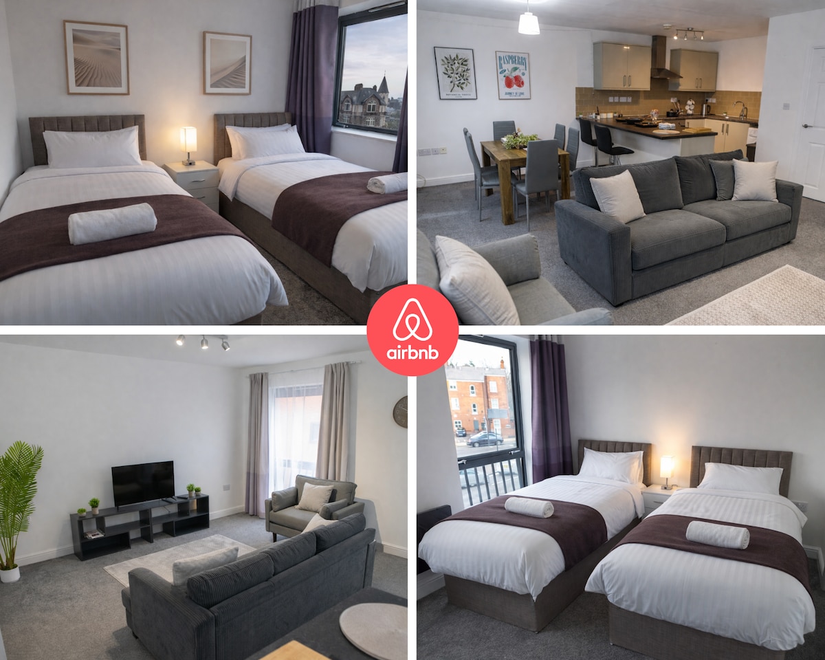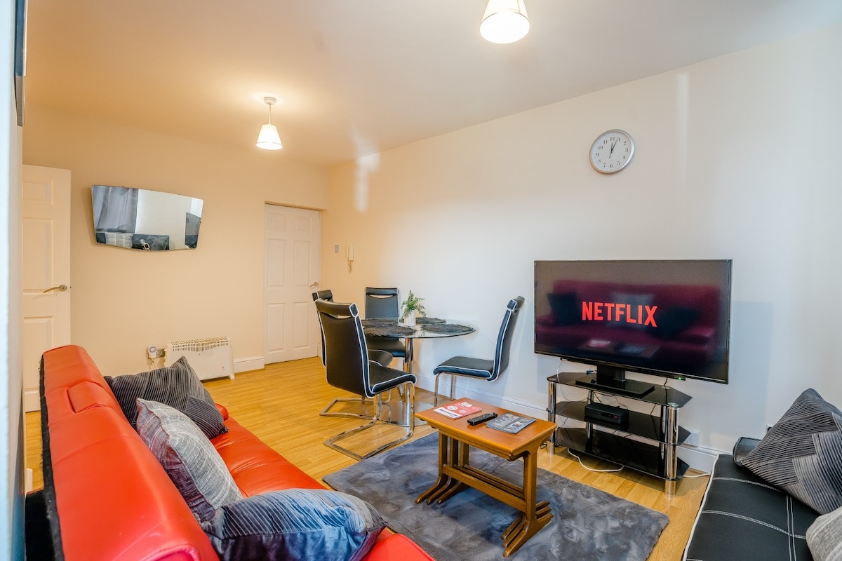Welcome to your home away from home, enjoy fast wifi and free parking. Our place is ideal for contractors, business travellers, relocation stays, families or couples. DISCOUNTS for LONG STAYS RestWorkPlayShortStays to claim ✓ 2 bedroom apartment- Double beds ✓ Free carpark to rear of building ✓ FREE fast WiFi ✓ Large living space ✓ Close to restaurants ✓ Fully-equipped kitchen with Coffee Machine & pods ✓ Professionally cleaned before each stay