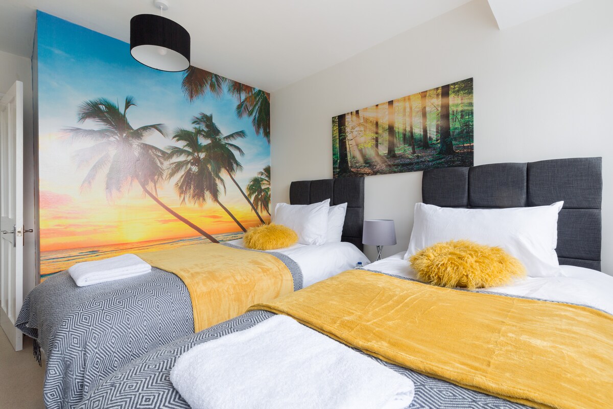 Welcome to our luxurious and comfortable 4-bedroom townhouse, perfectly located in the heart of town and 2 mins walk from the train station. A spacious home ideal for families, offering a practical layout with all the essentials for a relaxing stay. With 4 cosy bedrooms, an en-suite on the master a fully equipped kitchen and a modern living area, you’ll feel right at home. 10 mins walk away from Touchwood, restaurants, and attractions, making it easy to explore the best of Solihull town centre.