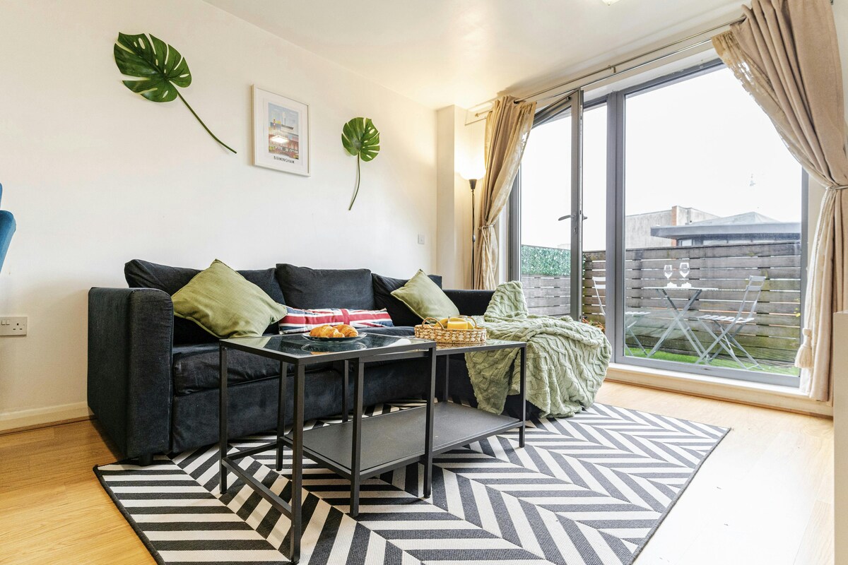 Industrial charm meets modern comfort in this one-of-a-kind central Birmingham apartment. Exposed brick walls, steel finishes, and open-plan living are softened by warm tones, plush textures, and thoughtful design. Located just minutes from New Street Station, Bullring, and top dining spots. Perfect for work or leisure stays. Enjoy high-speed Wi-Fi, a full kitchen, and a cosy vibe. Save 20% on monthly bookings—book your stay today!