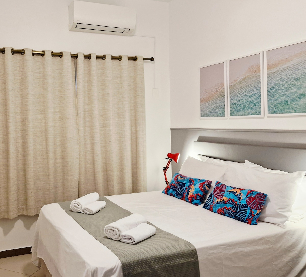 Apartamento de um quarto amplo e arejado que abriga até 6 pessoas confortavelmente. Dentro do melhor e mais bem localizado condomínio de Angra que conta com piscinas, quadras, academia, sauna, agência de turismo, restaurante, playground, estacionamento e tudo necessário para garantir uma estadia excelente. Ao lado do shopping da cidade e próximo ao centro e praias.