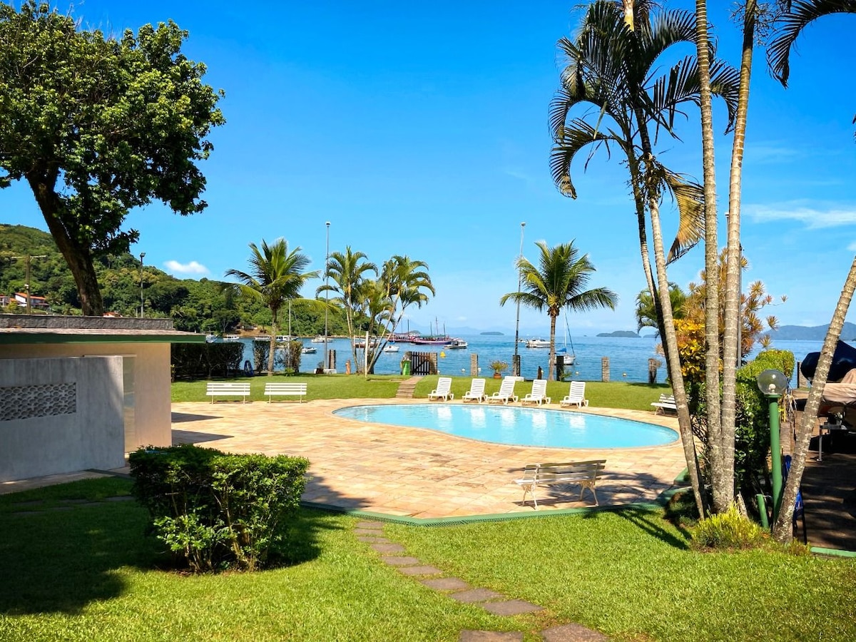 A casa fica no Condomínio Portogalo, que possui segurança 24 horas, cachoeira, sauna, mini academia, serviços náuticos e um mar calmo e ótimo para mergulho, e é possível ver tartarugas! Fica exatamente em frente a praia! Excelente para crianças - você consegue vê-las da varanda da casa. O condomínio possui acesso para o hotel por teleférico. Para usar as comodidades, é preciso entrar em contato com o hotel. Um dos melhores Condomínios de Angra dos Reis, situado há 110 km da Barra da Tijuca.