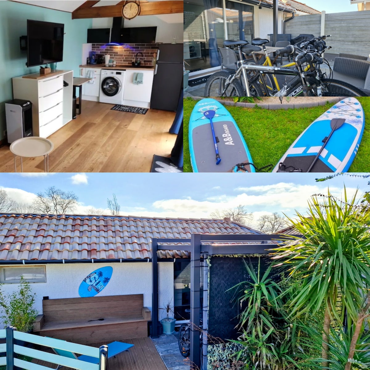 Laissez-vous tenter par cette chaleureuse petite maison indépendante de 20 m2 avec son patio de 15m2 et sa terrasse bois. Vous pourrez également bénéficier du lac de cazaux situé à seulement 2km par la piste cyclable, avec des velos et paddles à disposition. Proche de toute commodité ( Supermarché, boulangerie, pharmacie etc...). Enfin , en moins de 15 min vous pourrez rejoindre les plages océanes , et l'incontournable Dune du Pyla, les ports ostréicoles et bien d autres lieux à découvrir...
