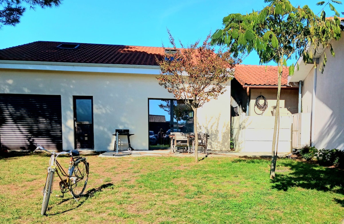 Maison au calme, située dans une impasse A 400 m du lac de Biscarrosse et 1 km du centre, 5 km du lac de Sanguinet 10 km de Biscarrosse océan Composée d' un jardin de 650 m2, 2 terrases ( Sud & Nord abritée ) 3 chambres + une salle de bain avec sanibroyeur 1 wc Fêtes et bruits proscrits svp Nous profitons de la maison les week-ends ensoleillés mais sinon résidons à 1 h, il ne manque donc rien niveau équipement. Le nettoyage est fait par une femme de ménage normale de façon normale.