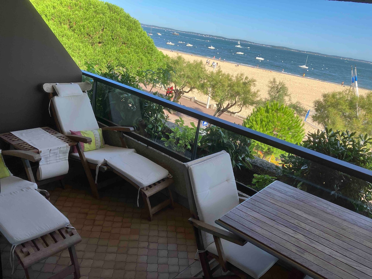 Appartement 1ère ligne Bassin d'Arcachon, entre mer et forêt. Les Jacquets presqu'île du Cap-Ferret. Au 1er étage d'une maison en bois de 2013, sur chemin privé. Accès direct à la plage. Climatisé tout confort 60 m². 1 chambre lit Queen-size matelas latex naturel, salle d'eau, toilettes, buanderie lave-linge, équipement BB, sèche-linge, grand séjour-salon-cuisine avec 1 lit-armoire Queen-size. Cuisine équipée four électrique, plaque induction, micro-ondes, lave-vaisselle réfrigérateur. TNT WIFI.