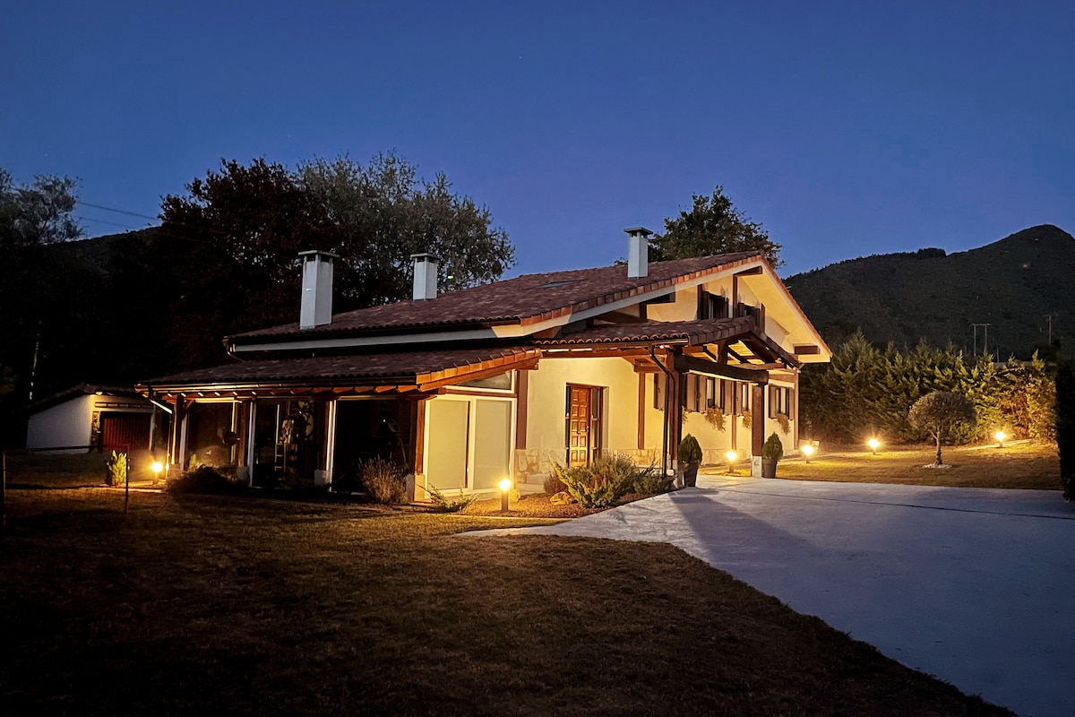 A 30' de Bilbao, 30 de vitoria y 45 de San Sebastián nuestro caserío tradicional vasco ofrece una experiencia única para aquellos que buscan escapar del bullicio de la vida cotidiana. Ubicado junto al parque natural de Urkiola con las vistas impresionantes. El caserío combina el estilo tradicional y toques modernos, con acogedoras habitaciones y la calidez de la chimenea. El patio privado dispone de un amplio senador cubierto , mesa grande, barbacoa y sauna privada como servicio adicional.