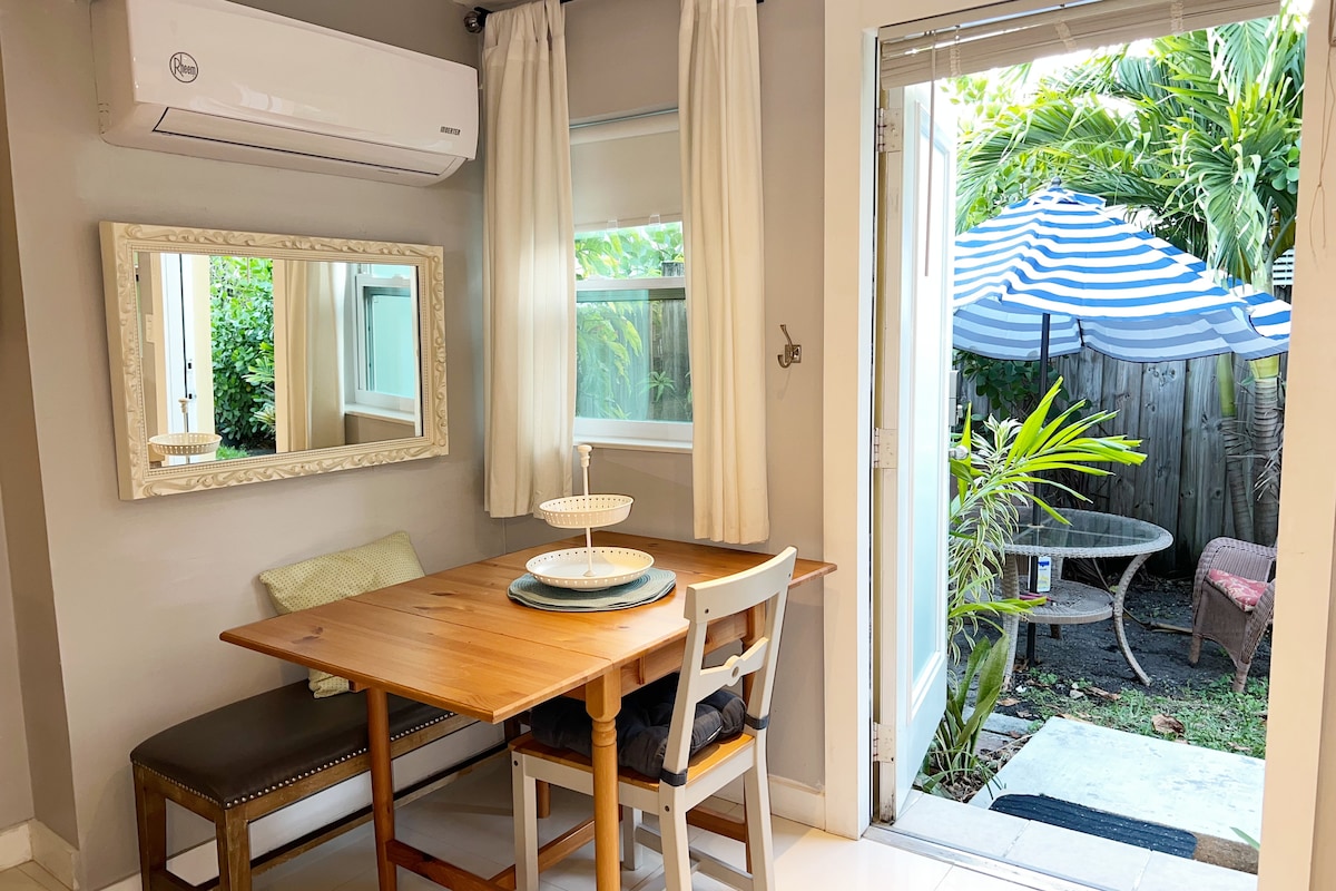 This cute and cozy studio is in the heart of Miami! It features a private entrance, a luxury queen-size mattress and bedding, a reclining sofa, a workspace with a desk and chair, a full bathroom with supplies, and a dining table for two. Includes parking, Wi-Fi, smart TV, microwave, small fridge, Air fryer, Coffee Maker W/ coffee and sugar to give you a special touch to your mornings. The Studio is attached to the Main House. Enjoy easy access to everything from this centrally located Studio.