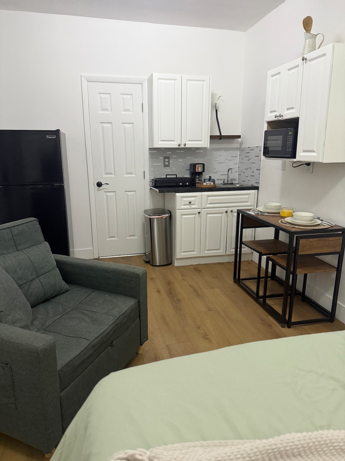 This is a newly renovated mid-century modern retreat in the heart of Pembroke Pines. This comfortable studio is ideal for short term stays, featuring a full kitchen, a beautifully updated bathroom, and a spacious living area. Unwind in a comfortable queen-sized bed and a futon that opens up to a double bed. Includes complimentary coffee, toiletries, fast WiFi, and a smart TV with streaming apps. Immerse yourself in comfort and style in this inviting space in vibrant Pembroke Pines.