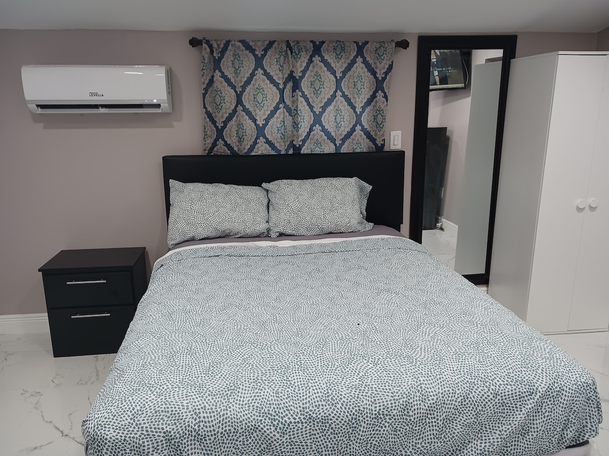 20% GOES TO SUPPORT FAMILIES FROM UKRAINE Welcome to our beautiful tastefully furnished Modern Suite with private entrance located on a ground floor in a compact and well maintained multifamily house of 4 units. We have taken great care of this property to provide you with the best possible experience. We have invested lots of hard-earned money and time to do so. This unit was completely renovated in 2020. All new Windows & Doors, Bathroom, Mini-split AC systems, porcelain tile flooring and more