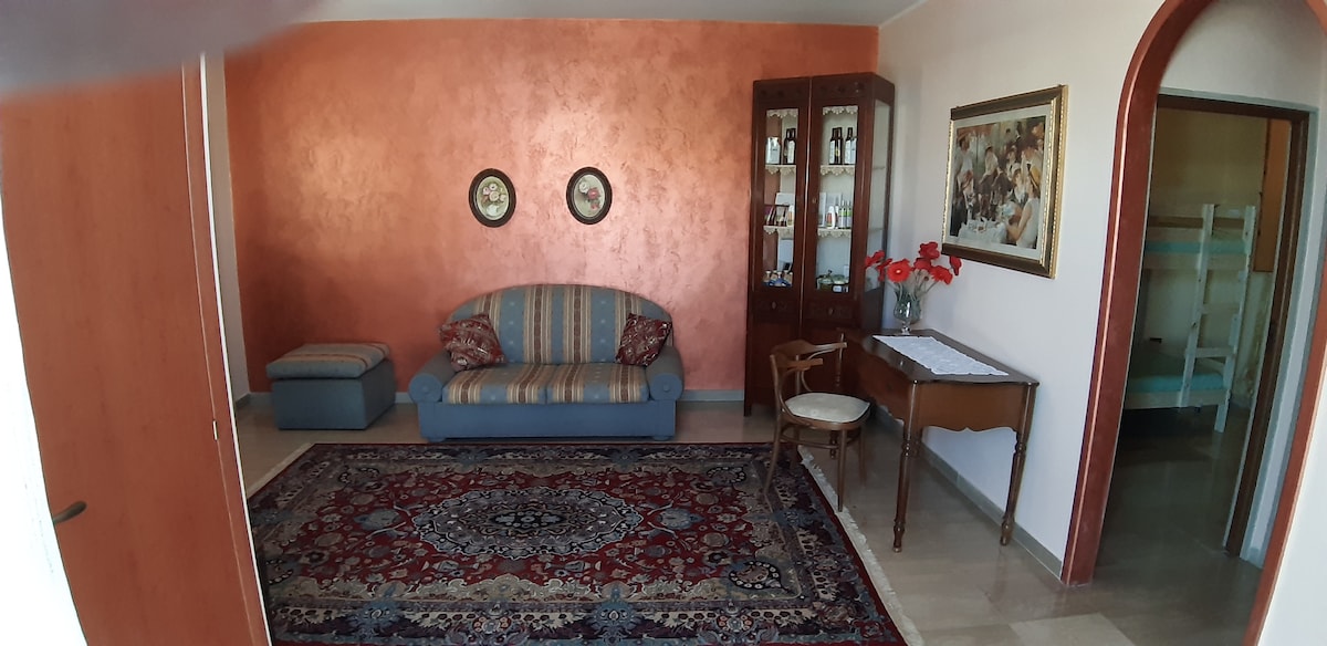 La casa si trova in una piazza vicina al centro storico, al terzo ed ultimo piano di un palazzo del '600, una volta teatro. Ci sono due terrazze: una a livello da 40mq con annessa lavanderia + un’altra di 120 mq con vista mare. In tutta la casa c'è un parquet in legno. Ci sono 2 condizionatori, 2 smart-tv, due bagni ed un bagno turco con cromoterapia. La casa, arredata con mobili antichi, è accogliente, molto luminosa e lontana da rumori.