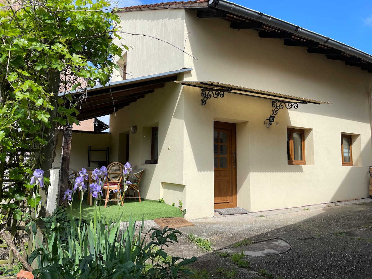 Charmante petite maison indépendante au milieu de mon jardin offrant 3 espaces séparés, comprenant le salon avec sa cuisine équipée (16m2), la salle de bain et la chambre à l'étage avec un grand lit pour 2 personnes. Le centre ville de Strasbourg est à 8 km, 25 mn en transport en commun (arrêt de bus à 1 mn). Place de parking disponible. Pistes cyclables à proximité pour d'agréables balades. Une terrasse privative attenante à la maison vous permettra de prendre vos repas en toute tranquillité.