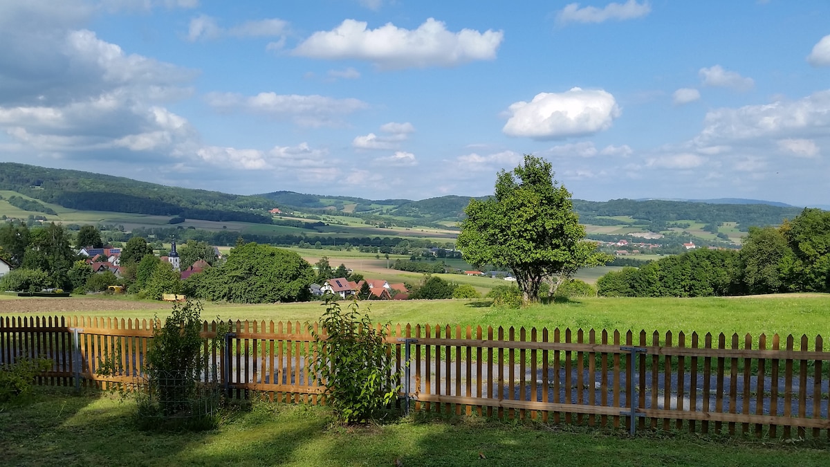 Natur Pur! Das idyllische Städtchen Bischofsheim liegt direkt am unterfränkischen Biosphärenreservat Rhön am Fuße des Kreuzbergs. Angrenzend an Felder und Wiesen liegt unser Ferienhaus, welches zu erholsamen Tagen oder aktiven Wander-, Mountanbike-, Skitagen einlädt. Bei einem herrlichen Blick auf Finkelberg und Kreuzberg könnt ihr die Seele baumeln lassen. Fühlt euch einfach wohl auf der überdachten Terrasse und lauscht den Rufen der Rotmilan.