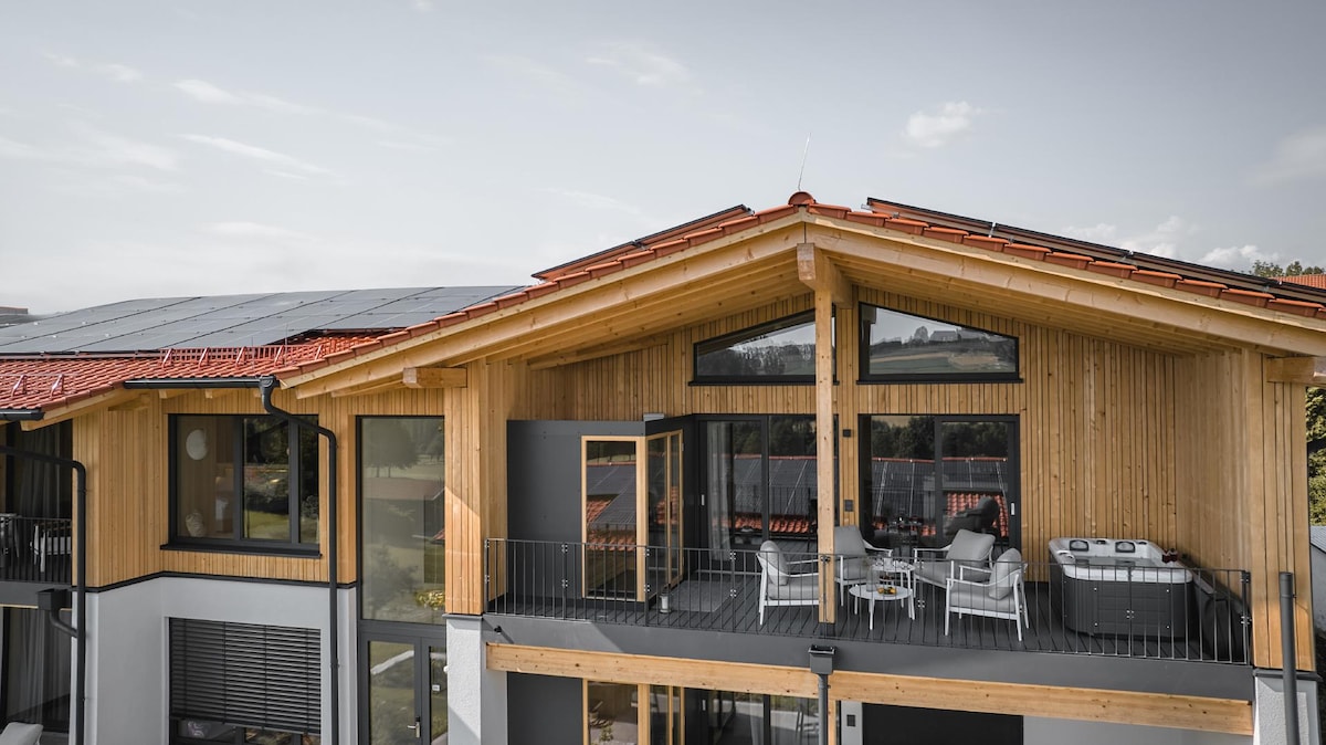 Chalet | Bavarian Forest | 90 m² | 2-4 Persons | 2 Bedrooms | Sauna & Whirlpool | Balcony & Terrace | Serviced Holiday Home Refresh in the natural water bath or unwind in the private sauna, a retreat for peace and relaxation. The terrace not only offers relaxation but also an incomparable view. Each room is designed for well-being, with natural elements and exclusive comfort. Here, you live in harmony with nature, in an oasis of security.