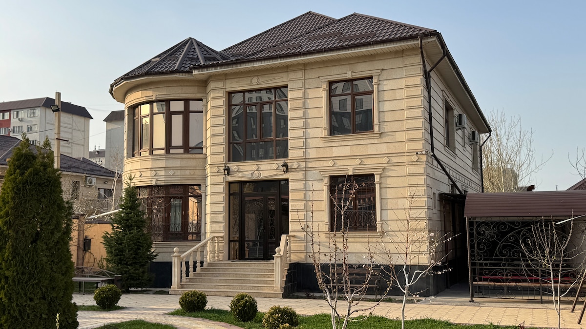 Large two-story mansion ideal for families, groups and gatherings. The home offers 5 bedrooms, a huge living hall for up to 30 guests, a spacious kitchen, guest room and several bathrooms. Guests can also enjoy a modern traditional Kyrgyz yurt in the courtyard, adding a unique local experience to their stay.