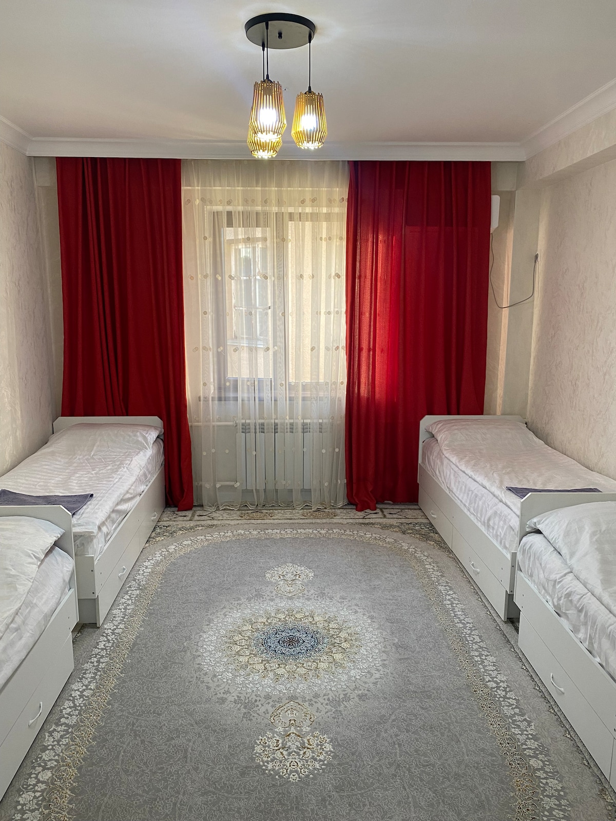 Large two-story mansion ideal for families, groups and gatherings. The home offers 5 bedrooms, a huge living hall for up to 30 guests, a spacious kitchen, guest room and several bathrooms. Guests can also enjoy a modern traditional Kyrgyz yurt in the courtyard, adding a unique local experience to their stay.