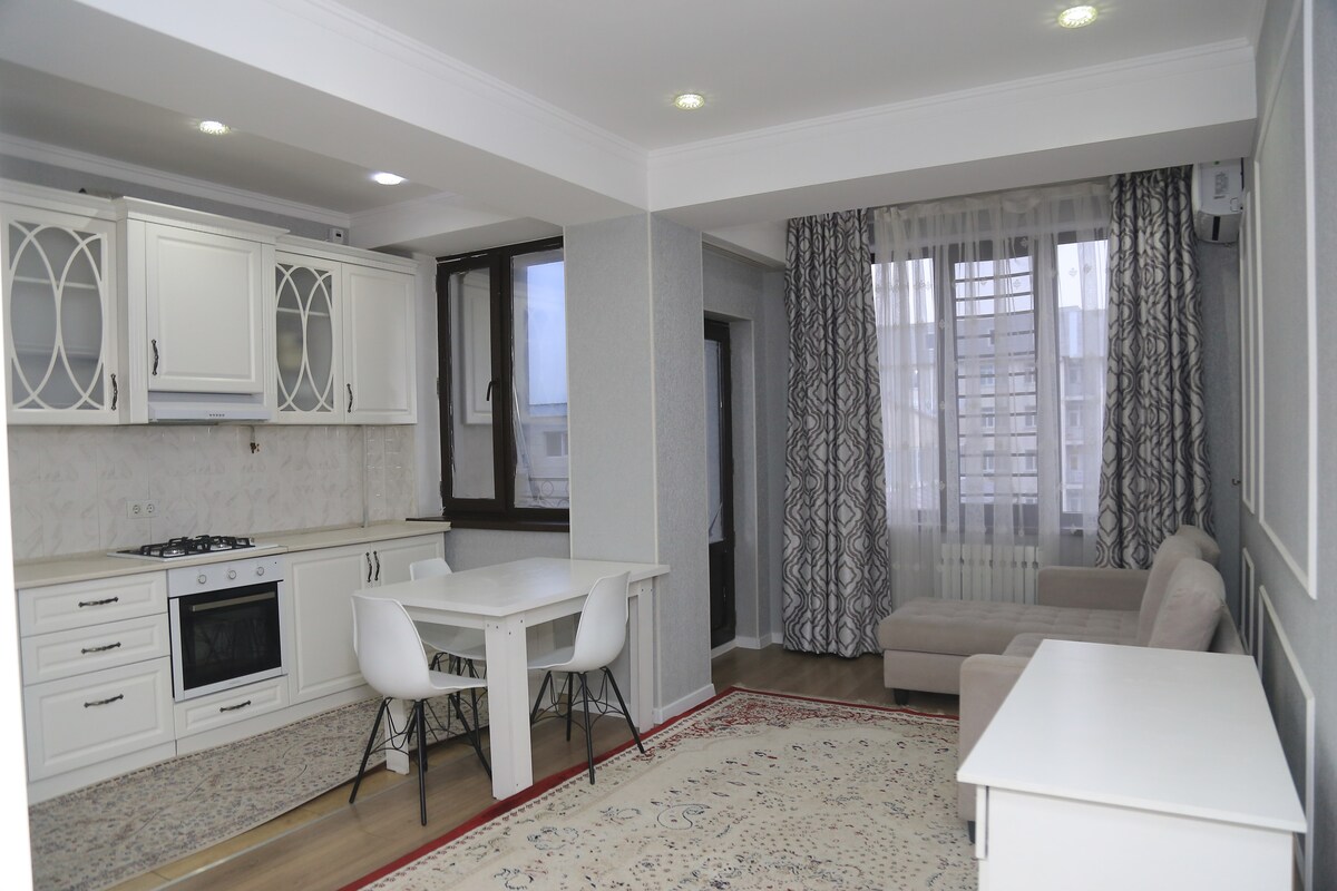 Apartments in the center of the city in a new complex with security ( 24/7). Good view of the city. The apartment has modern furniture, washing machine, dishes. Good internet and tv with english channels. Nearby are many shops, cafes. Large national restaurant Navat. The largest shopping center is Bishkek Park. Near Panfilov Park, Ala-Too Square, Erkindik Park.Our driver can meet you at the airport.