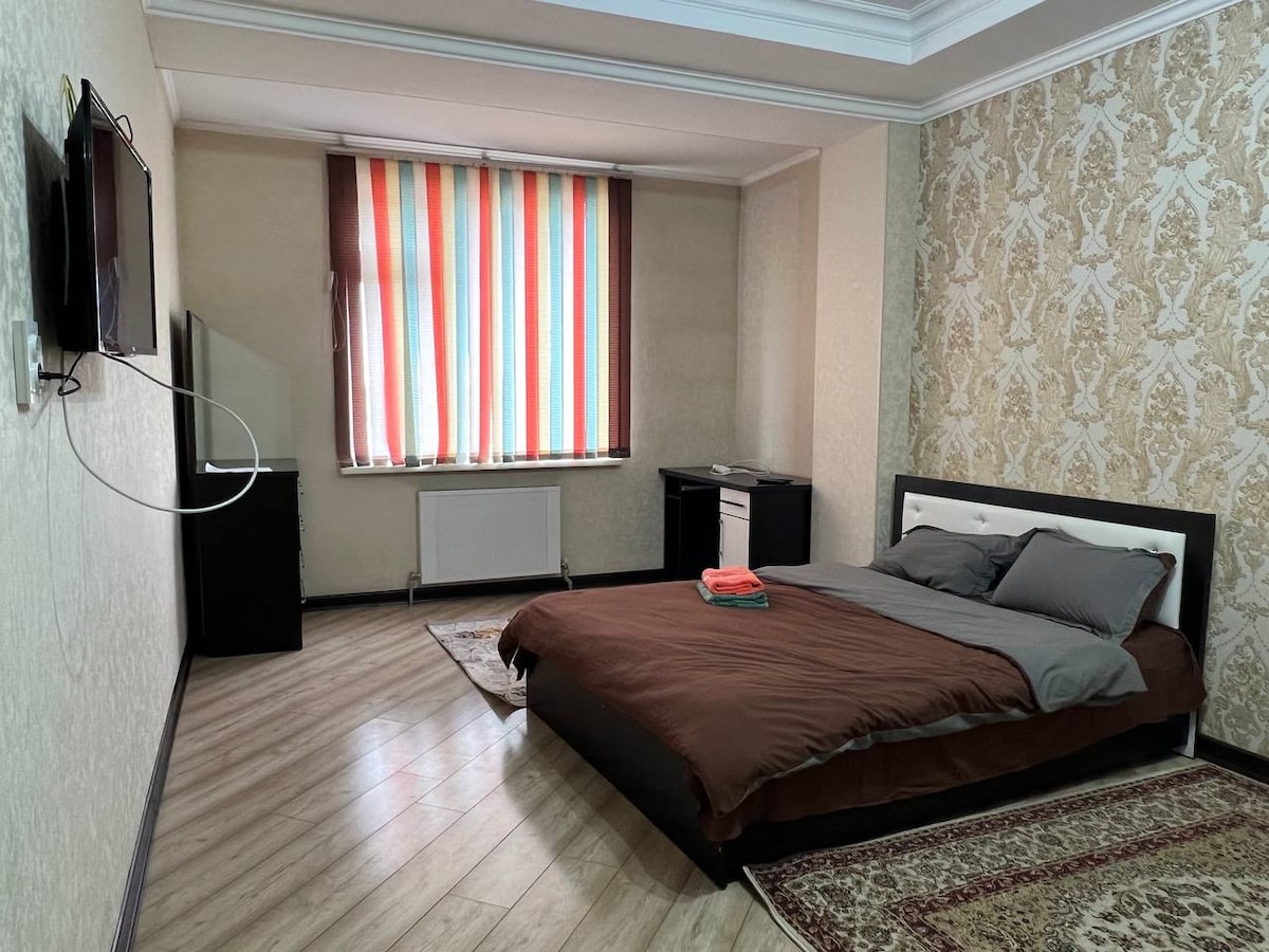 Dear friends, Welcome to Bishkek! Our new appartements located in the downtown area, 5 minutes by walking from the main square of Bishkek. Our “Home” situated in a very quite area, it is just 5 minutes by walking from the green Panfilov park. In our cozy apartments we tried to create the maximum comfort for your stay in Bishkek. Hope you will enjoy your stay with us!