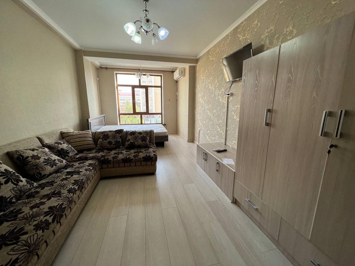 享受住在比什凯克市中心的时尚公寓。 全新、明亮、宽敞的公寓,位于全新装修的新住宅区。 舒适的卧室配有一张大床(180*200)和矫形床垫。 厨房-客厅配备所有必要的东西,让您住得舒适。 窗户享有城市和美丽山脉的美丽景色。 整个地区的步行区,有公园、商店、酒吧、夜总会、餐馆和咖啡馆。 10分钟。 步行到阿拉太中心广场。
