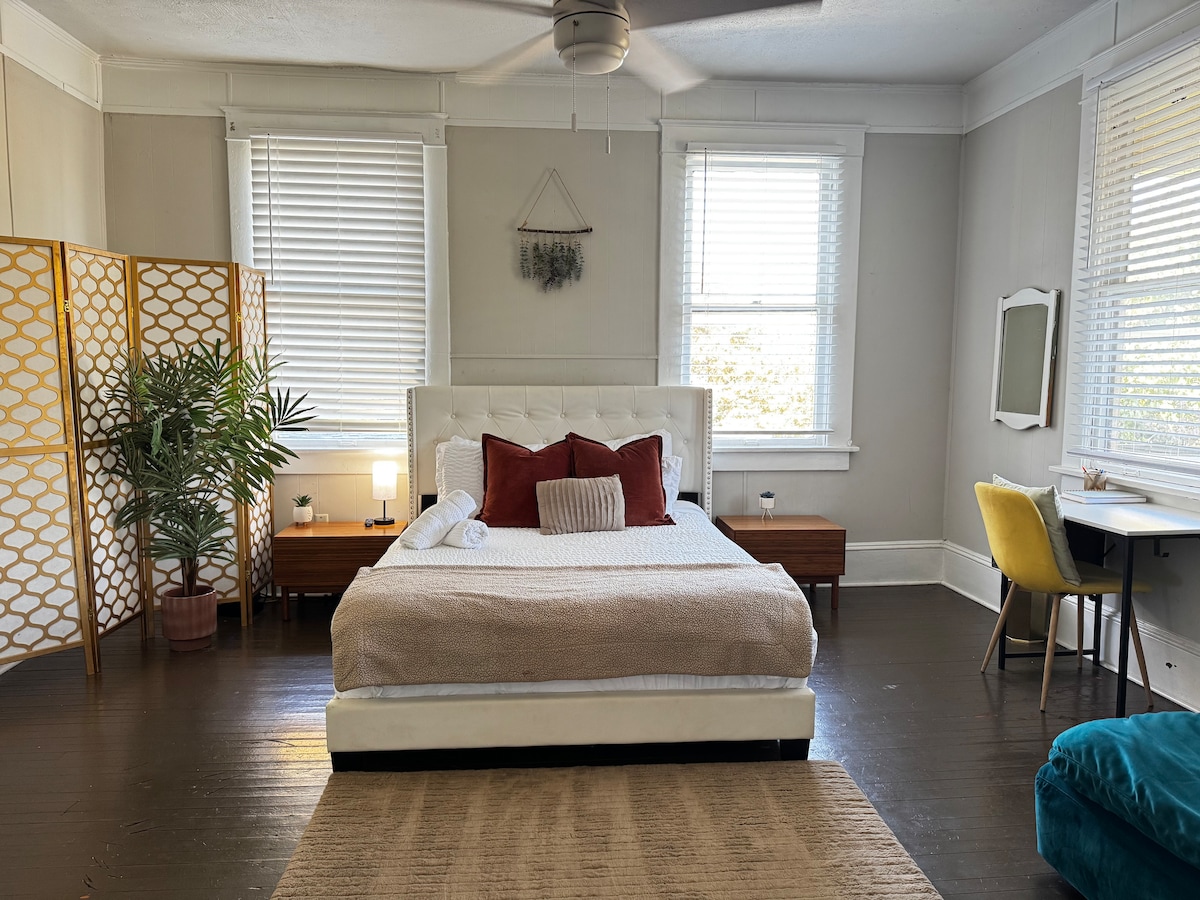 This suite is located on the second floor of a completely renovated 1930s building in the heart of the Bishop Arts District. Designed for a perfect staycation, business trip, or just passing through travelers looking to experience some of Dallas's best culture. You are steps away from some of the most popular destinations. This suite is curated with local Texas art and modern furnishings from Blu Dot. It is fully loaded and ready for your Dallas vacation, and includes a 300 sqft. balcony.